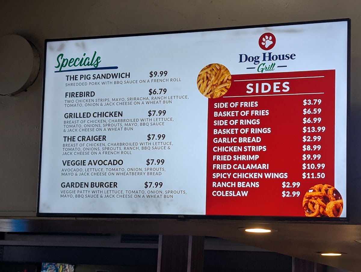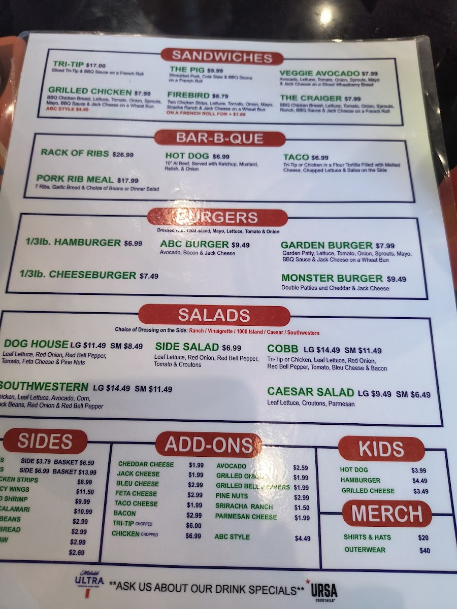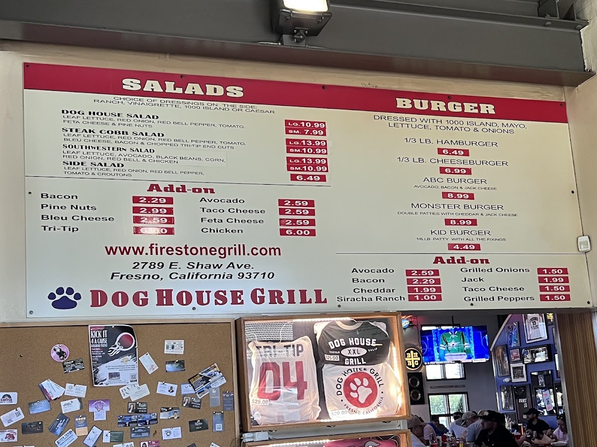 Dog House Grill offers a straightforward, relaxed menu that suits both casual meals and lively gatherings. The selection focuses on classic bar and grill fare with a comforting, homey feel—think hearty burgers, flavorful tri-tip sandwiches, and satisfying sides like baked beans and crispy fries. Whether you’re dropping in for a quick lunch, catching a game with friends, or enjoying a casual dinner, the food here pairs well with cold beers and the easygoing vibe of the space.